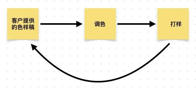 下图展示了多数数码打印工厂常见的打样流程。一般情况下, 客户需要进行一次两次甚至三次打样,才能找到与客户需求相匹配、或者最接近客户原稿的、可以接受的颜色选择。既耽误时间,也影响了生产效率。