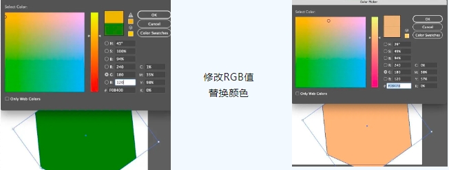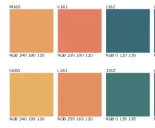 根据客户提供的色样, 我们把选中的与色样一致的色块RGB 值填入设计稿中, 就可以确保此颜色能够在客户的设计中再现。例如我们选中了颜色M160 ,RGB值为240, 180,120,将原稿的RGB 数据修改为该数值,就可以精准复现颜色M160。