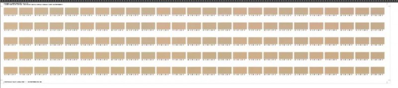 上图是根据RGB 240.180.120.的颜色打印出来的相邻的颜色。大家可以注意到, 这里的颜色定义不再是RGB, 而是CMYKOG (这是一台6色的设备)。在这里,系统通过略微调节每个通道的颜色,打印出大量的相邻色,从而帮助找到与客户实样最接近的色块, 并填入设计稿中来实现快速追色。