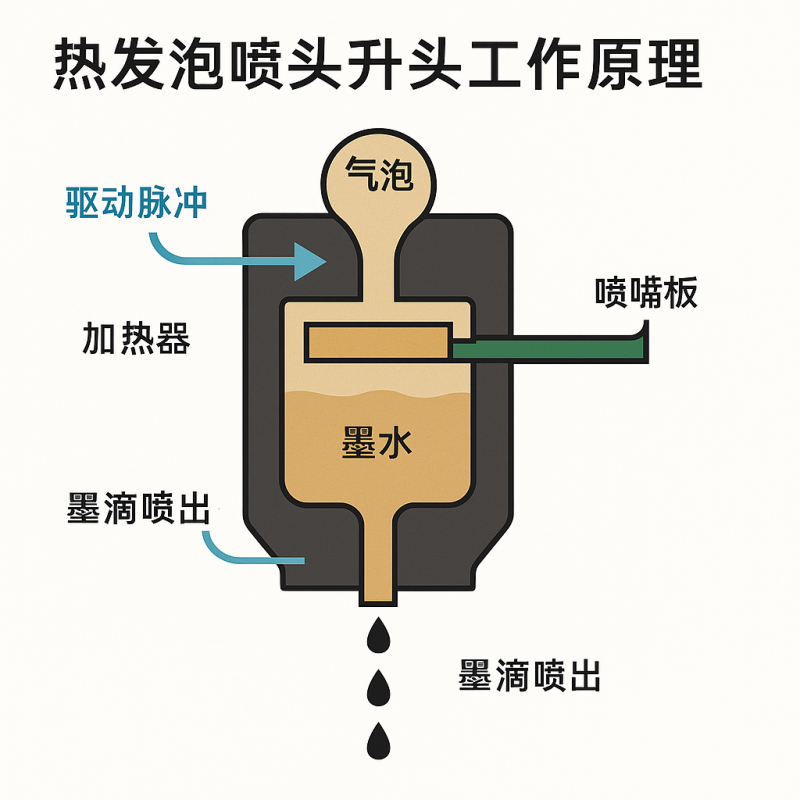 1. 热发泡喷头(Thermal Inkjet, TIJ)