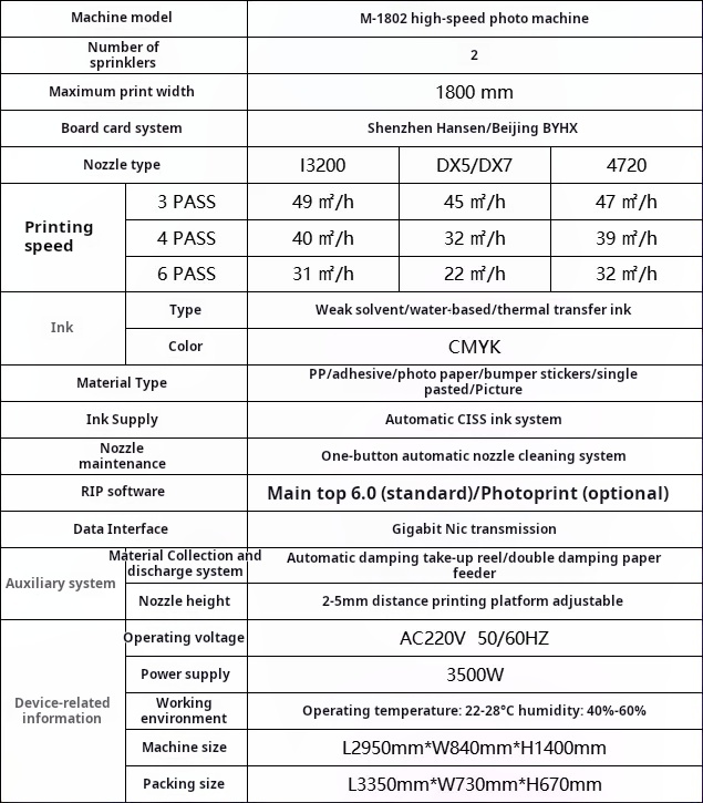 Printing width: 1.8 meters, capable of installing 2 Epson i3200/DX5/DX7/4720 nozzles.