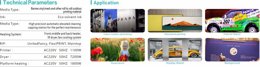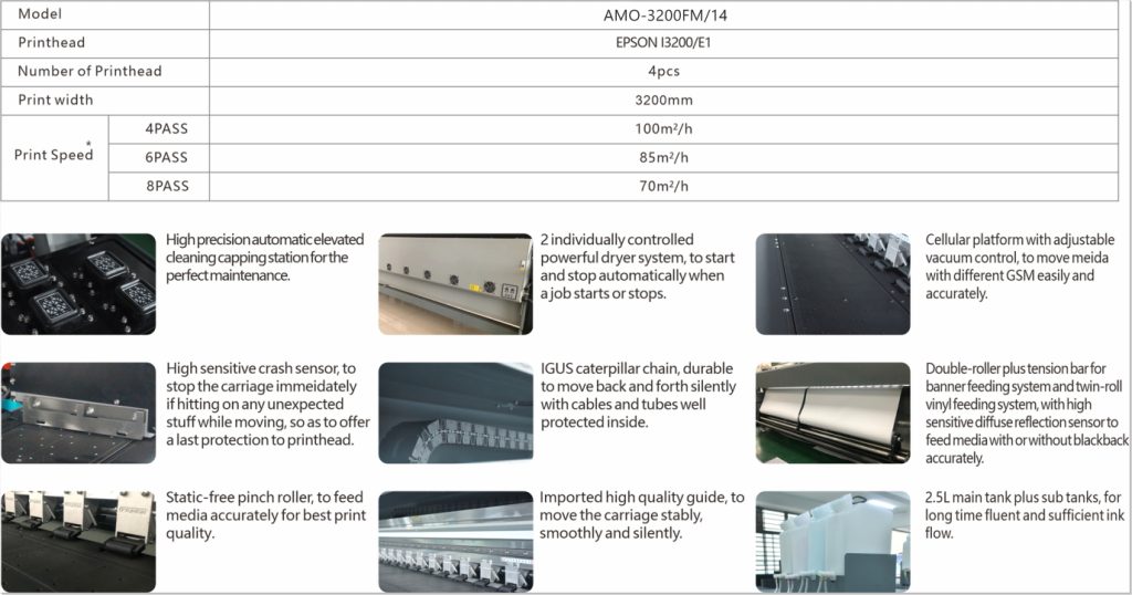 Printhead:EPSON I3200/E1Feature:3.2M print width Minimalistic but not simpleSize: L4727mm×W862mm×H1427mm
