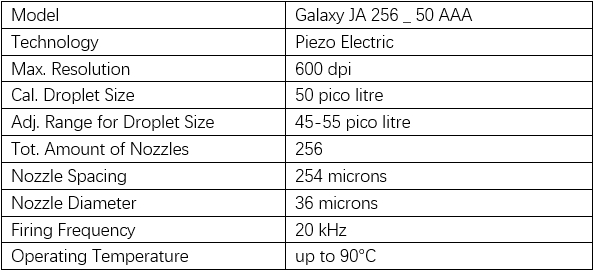 The Spectra Galaxy JA 256 / 50 AAA is a high performance, robust and reliable jetting assembly designed for a broad range of wide format printers at resolutions up to 600 dpi.